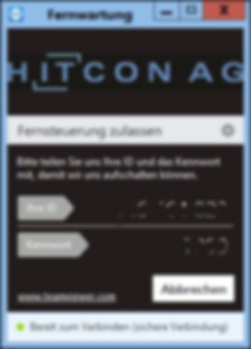 Mit dem HITCON Kundensupport Tool auf der Basis des TeamViewers können wir uns auf Ihren PC aufschalten, als würden wir gemeinsam davor sitzen.